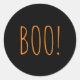 Boo black orange spooky typography fun Halloween Classic Round Sticker
