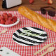BOO Black White Striped Halloween Party Plates. Customise with any text. Matching items are available.