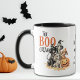 Here's a cute Halloween mug for kids that is more fun than scary, and can easily be customised for a grandchild, son, or daughter. It features an image of four adorable dogs dressed in witch costumes with a jack o' lantern. The text says "The Boo Crew" The image is printed twice on the mug, with black text at the centre that you may customise for your own greeting. Especially appropriate for young kids.