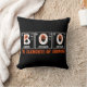 A funny chemistry joke typography quote design for Halloween, that reads: "BOO The elements of surprise".