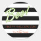 BOO green Chic Halloween Black Striped Sticker. Customise with any text. Matching items available.
