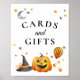 A little boo Halloween pumpkin baby shower cards and gifts sign. Modern Halloween-themed design for a boo party! This baby shower poster features a pumpkin, a witch hat, a balloon, candy corns and stars. This poster is great for baby girls and boys shower parties!