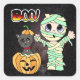 Boo Halloween Black Cat in Pumpkin and Mummy Square Sticker