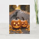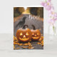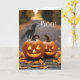 BOO! A pair of Jack o' Lanterns with glowing toothy grins with autumn leaves and a black raven, decorate the cover of this Halloween greeting card. Customise the text on the cover and inside as you like. Art, image, and verse copyright © Shoaff Ballanger Studios, 2023.