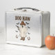 This is a standard metal lunchbox that appears to work just fine. We designed this box ourselves with an uploaded photo and custom text on the front and back. It looks absolutely beautiful except the front of the lunchbox is not centered like it shows in the photo. The print borders don't align with the inset flat part of the box where the preview photo online showed it perfectly centered in there. The back looks nice and centered though.