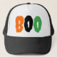 scary Halloween trucker Hats with the word BOO writing in a scary font. The perfect witch hat holiday gifts for the whole family.