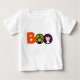 Cute and colourful Halloween T-shirts, tote bags, cards, stickers, mugs, and other Halloween apparel and gifts with a witch and frankenstein that reads BOO!