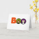 Cute and colourful Halloween T-shirts, tote bags, cards, stickers, mugs, and other Halloween apparel and gifts with a witch and frankenstein that reads BOO!