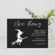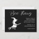 A flying witch on a broom stick against a black evening sky, and the trendy saying Boo Thang accent this Adult Halloween Party Invitation.