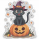 Celebrate Halloween with this adorable black cat sticker sitting on a carved pumpkin, complete with a witch's hat! Perfect for adding a spooky yet playful touch to your Halloween decorations, scrapbooks, or trick-or-treat bags. The cute design with vibrant colours and charming details makes this sticker ideal for Halloween parties, kids’ crafts, and seasonal décor. Whether you’re looking to get into the spooky spirit or add some festive fun, this sticker is the perfect choice for any Halloween project.