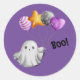 Boo! Whimsical Ghost With Balloons Classic Round Sticker