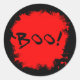 Halloween sticker has a big red splatter with the word BOO! in the centre.