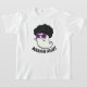 The t-shirt feels and looks great quality, a good thick cotton. It will be a little big for my son, but that means he will be able to wear it and not out grow it too soon. The print was as described on the order when personalised. True size, shape and colour T-shirt- thanks.