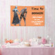 A spooky, realistic zombie like witch and a scary zombie practice their zombie dance steps. The text, in black and white, says Time to Boogie and Welcome to our Halloween Party! but you may customise it to anything you'd like. The image and text are on a bright orange background.