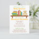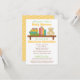 This baby shower invitation features a cute bookshelf with a fun colour palette and a teddy bear. It's perfect for a book-themed baby shower. Includes text for a Books for Baby request. Gender-neutral baby shower invitation.