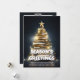 A modern and fun golden Christmas Tree with a golden star on top is made up of stacked books and is framed by a dark blue background that has large white templates near the base for your custom festive season greeings. The template currenlty reads "Season's Greetings" and has two additional templates beneath it for your message to customers and/or clients. The reverse side is the same dark blue on which templates for additional wording plus your company qr code or corporate logo appear. These are ideal for the festive holiday period from a writer, novelist, publisher, proofreader, historian or anyone whose profession involves books. Convey the spirit of the season to customers, friends and family with this plain but eye-catching design. Season's Greetings and Happy holidays!