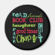 Fun colourful graphic design features words about a Book Club. Friends, page, chapter, laughter, chat, and good times. Makes a great gift for birthday, hostess or holiday.