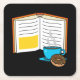 Book Coffee and Doughnut Cartoon Square Paper Coaster