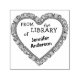 Personalised from the library of stamp featuring a custom name of a book collector and a lovely heart shaped bookshelf full of books illustration. Mark your books with this cute library stamp. Personalise it by replacing the sample name with your own name,