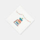 This modern and colourful napkin is ideal to celebrate a Baby Shower with a “Bring a Book for Baby” theme. It features a stack of books with a cute bookworm on top wearing big glasses and a bow tie. A pennant on top adds a festive look. This unisex napkin will help you build the baby’s library white hosting a stylish event.