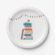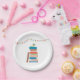 This modern and colourful plate is ideal to celebrate a Baby Shower with a “Bring a Book for Baby” theme. It features a stack of books with a cute bookworm on top wearing big glasses and a bow tie. A pennant on top adds a festive look. This unisex plate will help you build the baby’s library white hosting a stylish event.