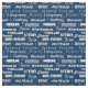 Fun yet stylish dark blue fabric with a typographic print of different book genres in white text.