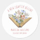 Pretty open book with flowers and the saying A New Chapter Begins make for a lovely graduation sticker for a book lover! Hand lettered typography for the saying and the name. The watercolor book is lovely and features different blooms. See coordinating items in our shop, Enchanted Finch.