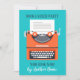 A fabulous teal and orange typewriter design with lots of space for both your book details - and information about your event. Stylish flat card invitation.