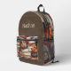 This backpack is perfect for book lovers, with its whimsical pattern of books and apples stacked on a shelf. Background is a faux brown suede, complete with stitching. Personalise it with your name at the top.