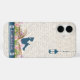 Escape into a literary dream with this enchanting book lovers iPhone case. Featuring a silhouette of a girl peacefully reading atop an open book adorned with delicate pink flowers and fluttering butterflies, this design evokes a sense of tranquillity and imagination. A softly glowing lantern hangs above, casting a gentle light on the scene. The background is a subtly textured parchment with flowing script, adding a vintage touch. Personalise this case with a name in elegant script across a decorative blue book spine, making it a unique and thoughtful accessory for any book lover.