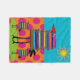 Book Lovers Fleece Blanket Whimsical Book Birds design. Artsy and fun birds created from a stack of books, orange and pink polka dots with a bright blue background and sun.