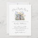 A New Chapter Begins. Celebrate the bride-to-be with this cute and elegant book-themed bridal shower invitation. At the top, “A New Chapter Begins” is written in a soft handwritten script, setting a sweet and joyful tone for the celebration. Just below, a watercolor stack of books appears in shades of blue, pink, and white. The books are surrounded by florals in blue, pink, and yellow with soft green leaves, creating a fresh and cheerful focal point.