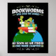 This funny book lover & reading teacher design reads "bookworms will rule the world as soon as we finish one more chapter".The design features a bookworm.