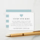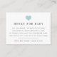 Slip these petite cards into your baby shower invitations when requesting books in lieu of cards. Design features chic black lettering with a small light blue heart illustration at the top. A sweet poem explains the book request: "just one request, we hope it's not hard // Please bring a book instead of a card // By signing your name, we'll remember and share // your sweet gift, even when you're not there." Personalise with the guest of honour's name and shower date along the bottom.