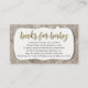A wonderfully rustic winter backdrop for your baby shower invitation insert, requesting books instead of cards for the soon-to-be well-read baby on the way.