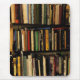 This mousepad features shelves of colourful books in colours of red, green, yellow, blue, black, orange and white. They form an interesting abstract vertical geometrical pattern.