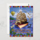 This beautiful, original fantasy postcard is based around the Emily Dickinson poem that begins, "There is no Frigate like a Book To take us Lands away." The quote appears at the bottom, below a masted sailing ship made of an antique book. The words from the poem are scrawled throughout. They're torn-looking on the sails, they wrap around the balloon in the distance, and they decorate the wings of a dragonfly that has a pencil body. They even faintly appear on the faded rainbow. Meanwhile, book seagulls fly away while a killer whale and a purple squid surround the book ship. It's a pretty, surreal scene for any book lover, avid reader, writer, English teacher, librarian or bookstore owner. The sides are bordered in a bookshelf pattern.