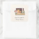 Book Stack and Flowers Personalised Bookplate Square Sticker