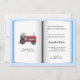 Book Theme Baby Shower Invitation for a Baby Boy. Baby Shower Invitation is an open book with info about a boys baby shower. Invitation asks for books for a children's library.