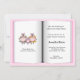 Book Theme Baby Shower Invitation for a Baby Girl. Baby Shower Invitation is an open book with info about a Girls baby shower. Invitation asks for books for a children's library.