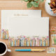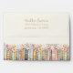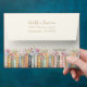 Ensure your invitations arrive in style with our elegant envelopes. They feature a return address section adorned with a retro vintage typewriter font and a trendy gold script. These envelopes are set against an ivory backdrop, beautifully complementing the handpainted watercolor illustrations of books and wildflowers that define our collection.