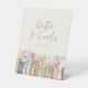 Direct your guests gracefully with our "Gifts and Cards" tabletop sign, elegantly crafted with the soft watercolor illustrations of books and wildflowers typical of the "Wildflower and Books" collection. The sign features a harmonious blend of pink, blue, green, and gold hues on an ivory backdrop, with both vintage typewriter and modern gold script fonts, making it a stylish and functional addition to your gift table.