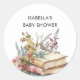 Introducing our Favour stickers - the perfect addition to your book-themed baby shower! Featuring a delightful pile of books with wildflowers on a crisp white background.