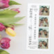 This design features a fun photo booth style format. Easily add your 4 square photos (simply take 4 selfies with your phone, crop and upload!). Click the "Click to customize further" button to edit the text colors and background color.