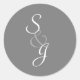 Charcoal grey envelope seal sticker with bride's and groom's initials.