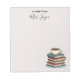Unique teacher notepad design featuring a charming stack of books and coffee cup. Customise with your teacher's name for a thoughtful and practical gift.
