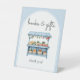 Add a touch of rustic charm to your gift table with this adorable “Books & Gifts” pedestal sign! Featuring a sweet blue watercolor farmer’s market stall, this lovely sign is perfect for guiding guests as they drop off their thoughtful presents and beloved baby books.