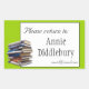 This design has a cut out photograph of hardback books. The text reads "Please return to: Your Name, your@email". All text is easily personalised. It's possible you might want to move it around or resize things and that can be easily done - just click the 'customise' button. You can also change the background colour.