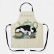 A cute black and white tuxedo cat sleeping on a pile of books with a green teapot in behind and a cup of tea in front.