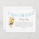 A fun, Books for Baby shower enclosure featuring blue flag banner at top, a teddy bear holding onto a cute honey bee. Templates on reverse side with a teddy bear sleeping on a blue flower.